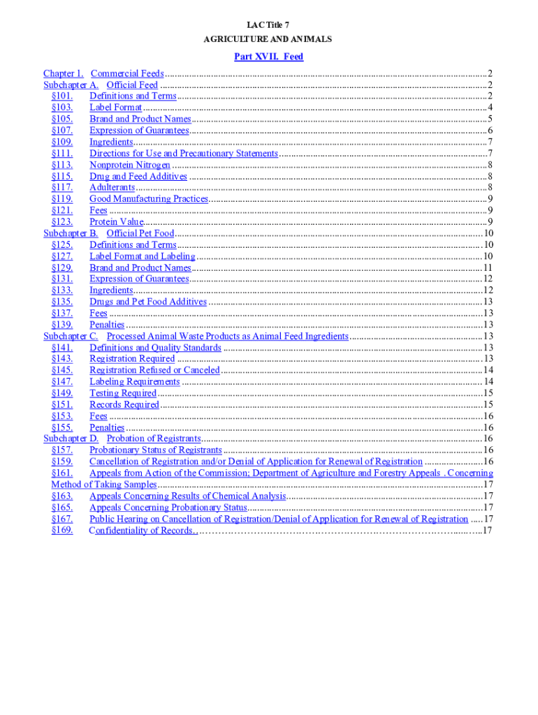 Get the free LAC Title 7 Part XVII FEEDS