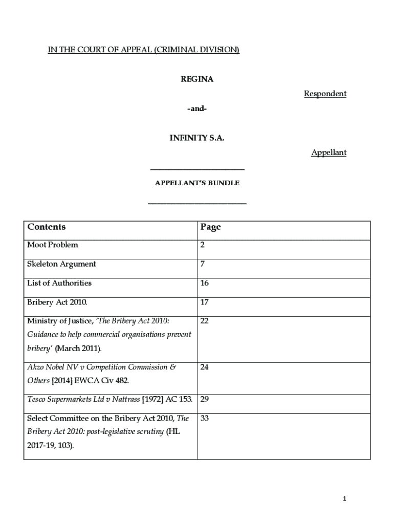 ___ContentsPageMoot Problem2Skeleton Argument7List of Authorities16Bribery Act 2010.17Ministry