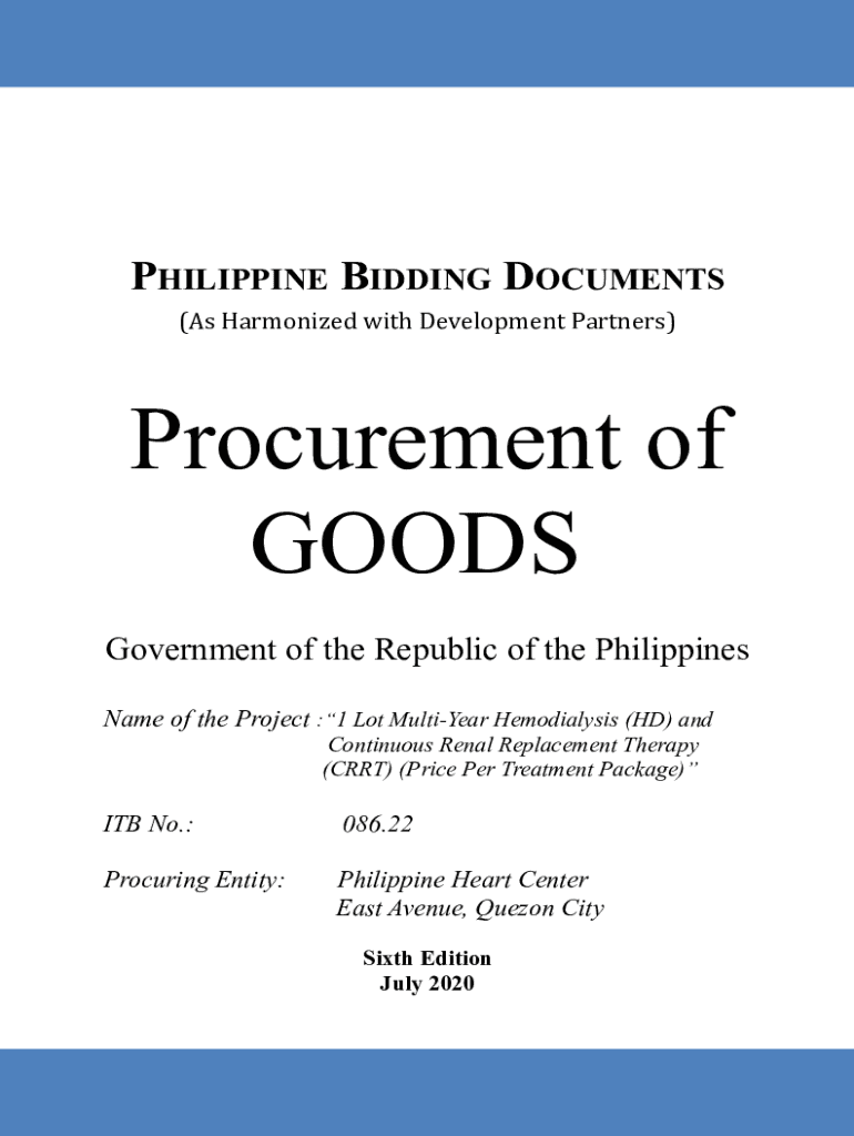 PHILIPPINE BIDDING DOCUMENTS (As Harmonized with Development Partners)Procurement of GOODS Government of the Republic of the Philippines Name of the Project :1 Lot MultiYear Hemodialysis (HD) and