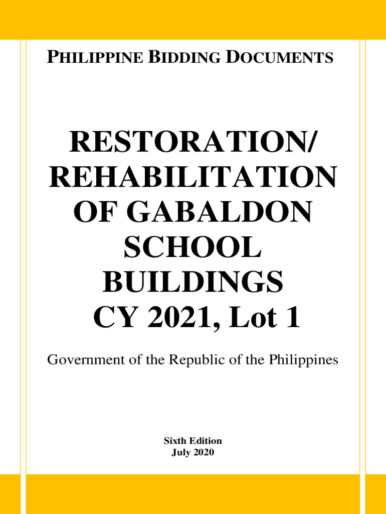 PHILIPPINE BIDDING DOCUMENTSRESTORATION/ REHABILITATION OF ABANDON SCHOOL BUILDINGS CY 2021, Lot 1 Government of the Republic of the PhilippinesSixth Edition July 2020Preface These Philippine Bidding