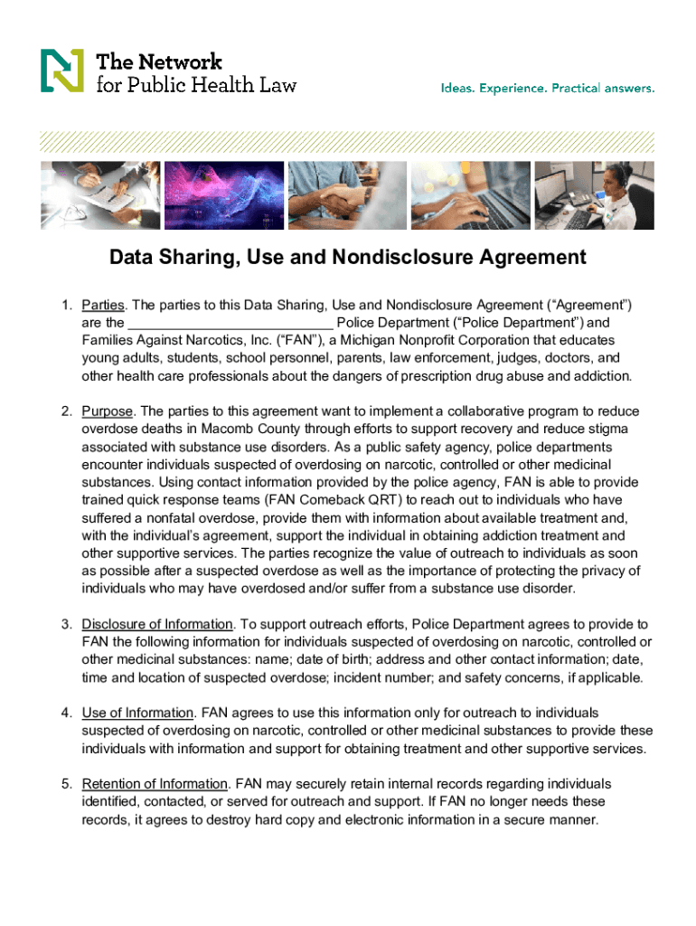 Data Sharing, Use and Nondisclosure Agreement 1. Parties. The parties to this Data Sharing, Use and Nondisclosure Agreement (Agreement) are the ___ Police Department (Police Department) and Families