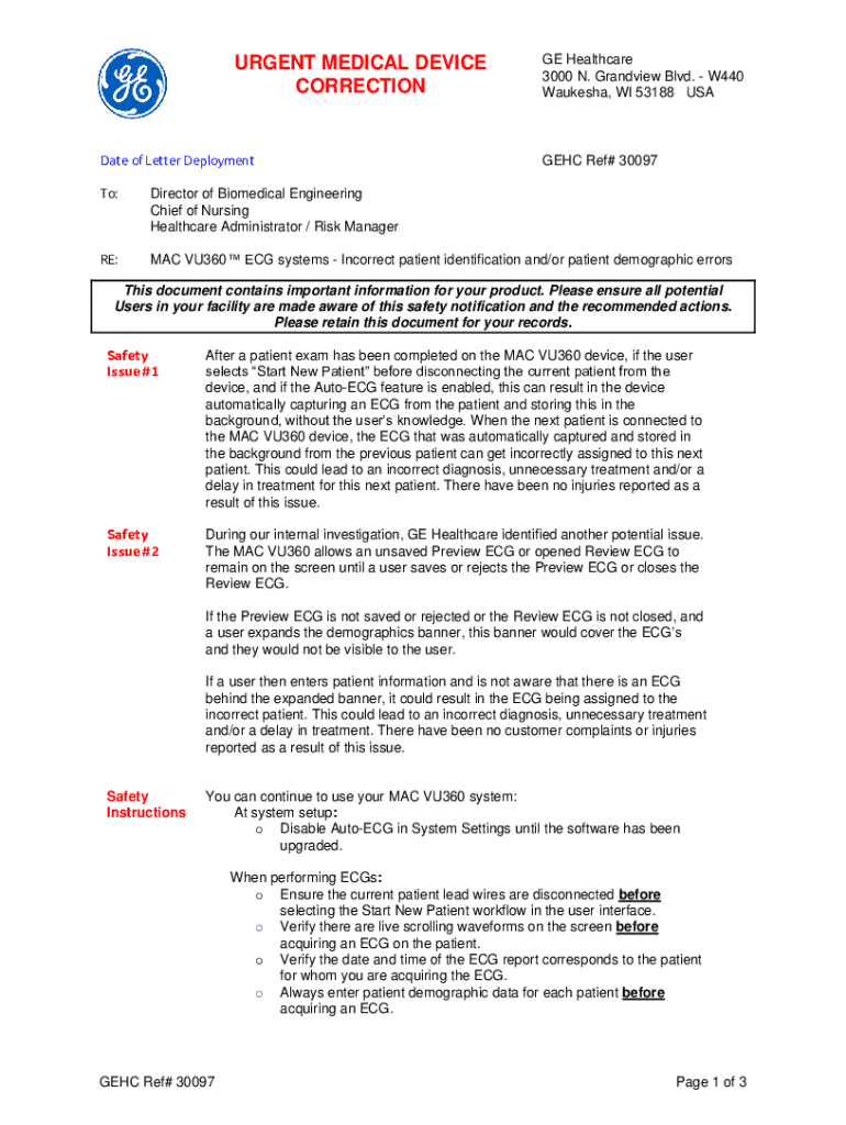 Manufacturers, distributors, and importers of medical devices are required to file urgent medical device correction.
