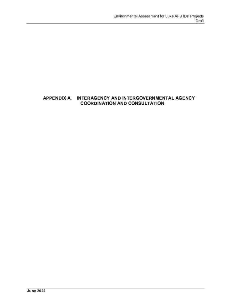 Environmental Assessment for Luke AFB IDP Projects DraftAPPENDIX A. June 2022INTERAGENCY AND INTERGOVERNMENTAL AGENCY COORDINATION AND CONSULTATIONEnvironmental Assessment for Luke AFB IDP Projects