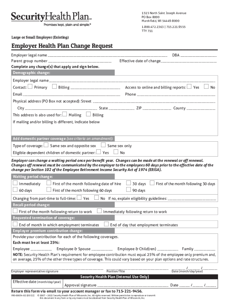 TTY 711Large or Small Employer (Existing)Employer Health Plan Change Request