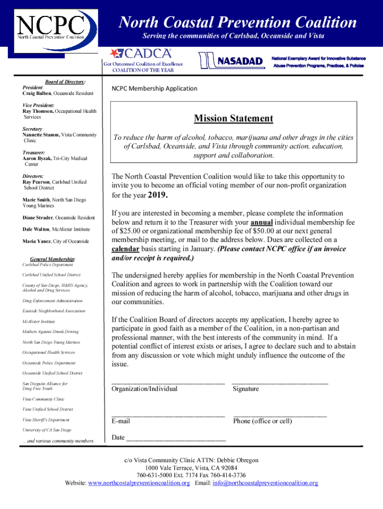 Get the free North Coastal Prevention Coalition - Vista, United States