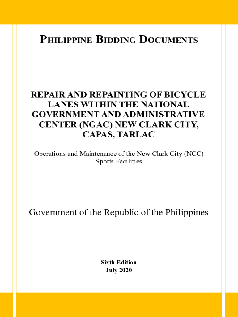PHILIPPINE BIDDING DOCUMENTSREPAIR AND REPAINTING OF BICYCLE LANES WITHIN THE NATIONAL GOVERNMENT AND ADMINISTRATIVE CENTER (NGC) NEW CLARK CITY, CAPS, TARMAC Operations and Maintenance of the New