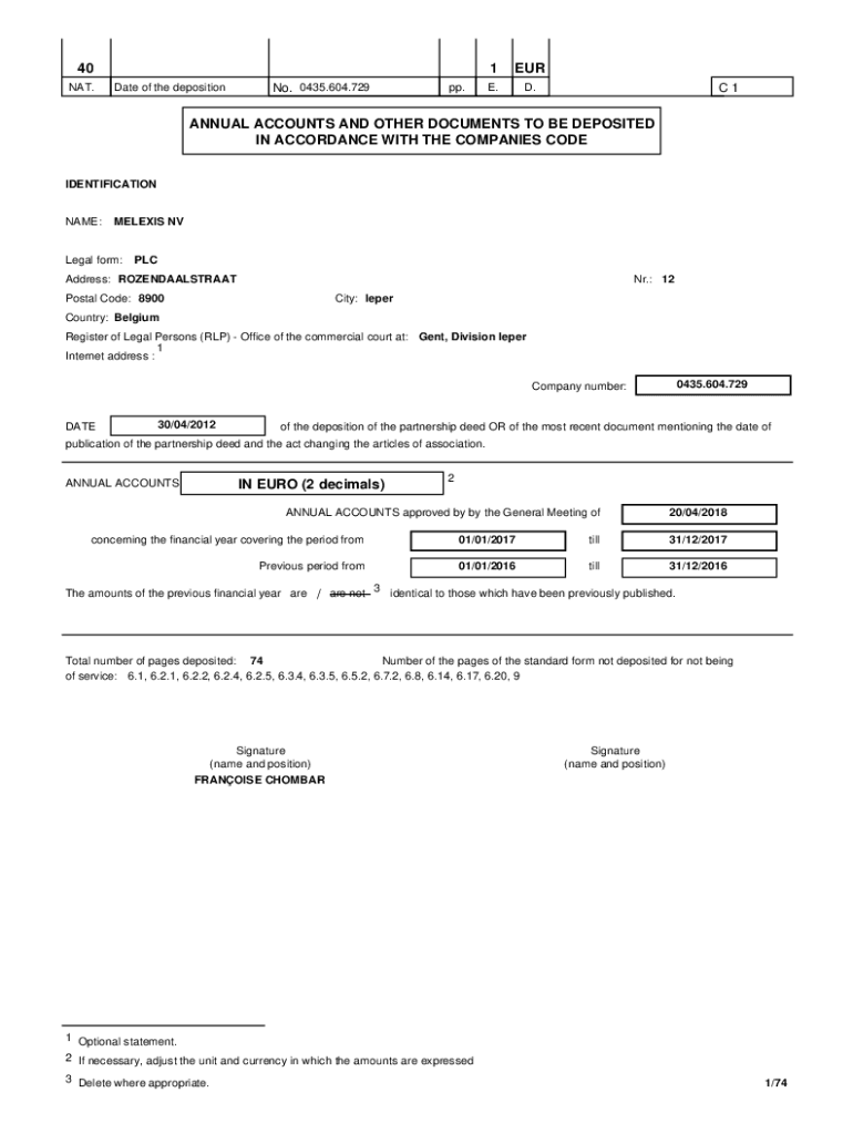 NAT. Date of the deposition No. 0435.604.729pp.1EURE. D. C1ANNUAL ACCOUNTS AND OTHER DOCUMENTS TO BE DEPOSITED