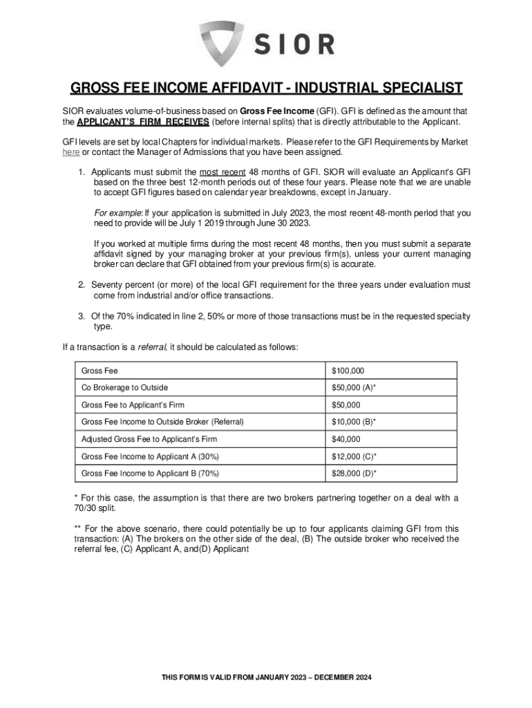 Get the free GROSS FEE INCOME AFFIDAVIT - INDUSTRIAL SPECIALIST