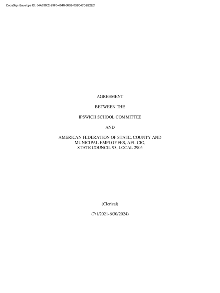 DocuSign Envelope ID: 64A6380229F04848866B03BC47D7B2ECAGREEMENT BETWEEN THE IPSWICH SCHOOL COMMITTEE AND AMERICAN FEDERATION OF STATE, COUNTY AND MUNICIPAL EMPLOYEES, AFL CIO, STATE COUNCIL 93, LOCAL