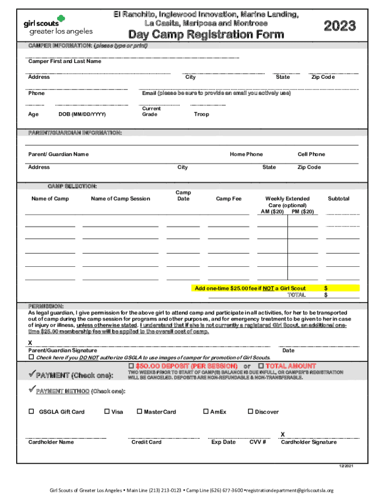 La Capital, Mariposa and Montrose2023Day Camp Registration Form