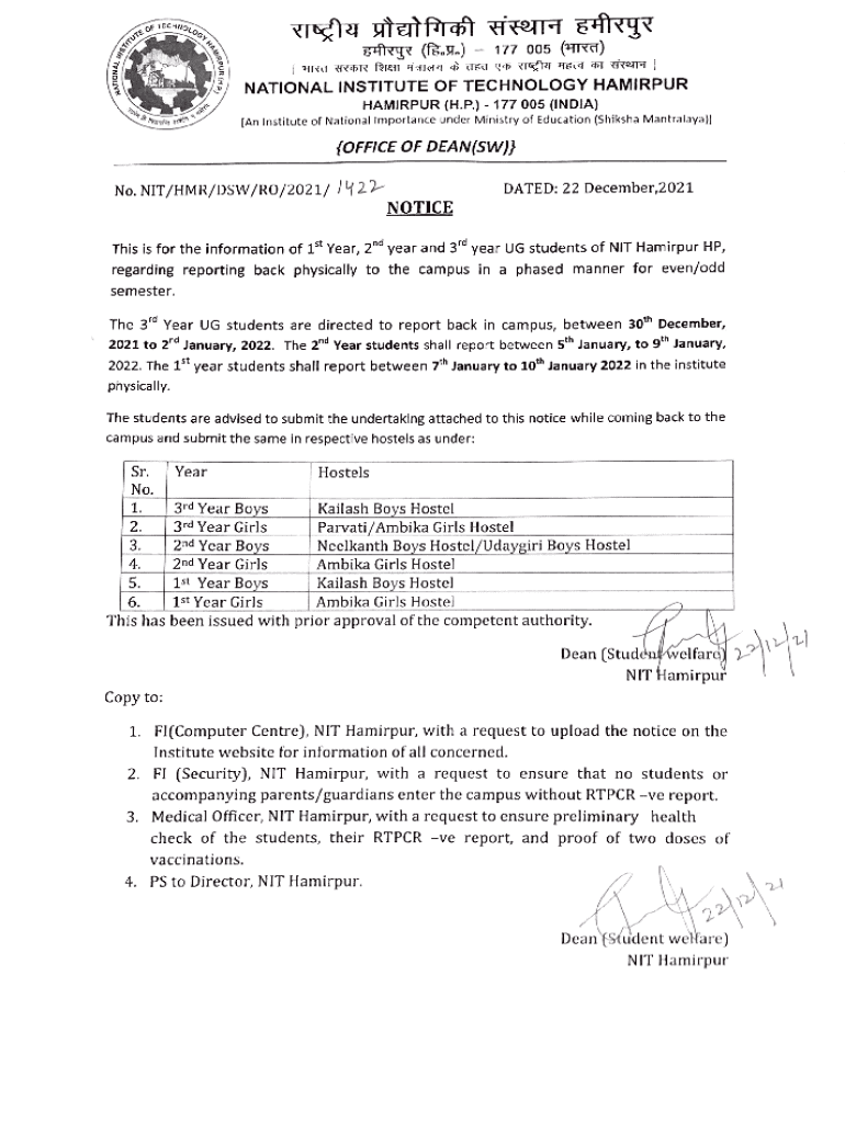 NATIONAL INSTITUTE OF TECHNOLOGY KHAIRPUR (H.P.) 177 005 (INDIA)[An Institute of National importance under Ministry of Education (Shikhar Mandalay)]OFFICE
