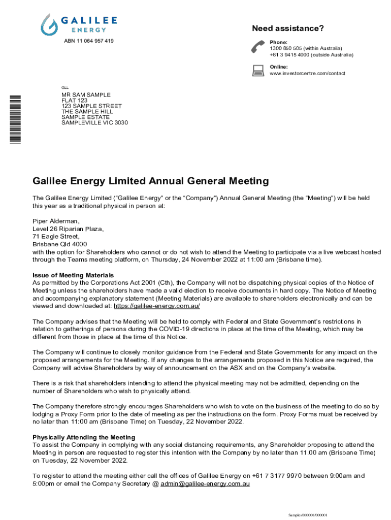 Need assistance? Phone: 1300 850 505 (within Australia) +61 3 9415 4000 (outside Australia) Online: www.investorcentre.com/contact×L000001×GELLER SAM SAMPLE FLAT 123 123 SAMPLE STREET THE SAMPLE
