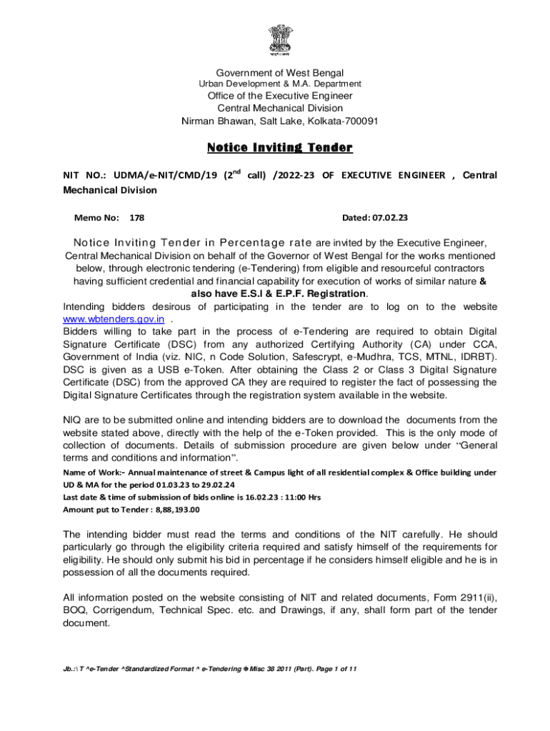 Norman Shawn, Salt Lake, Kolkata700091Notice Inviting Tender