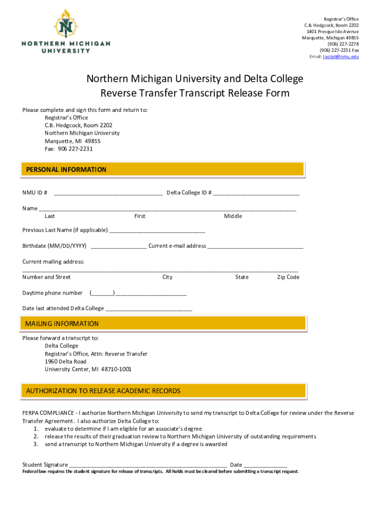Get the free Northern Michigan University and Delta College Reverse ...