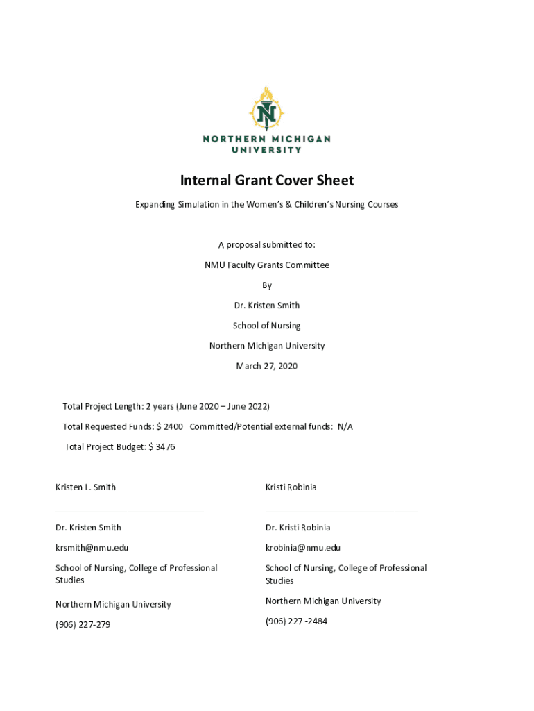 Internal Grant Cover Sheet Expanding Simulation in the Women's & Children's Nursing Courses proposal submitted to: NMR Faculty Grants Committee By Dr. Kristen Smith School of Nursing Northern Michigan