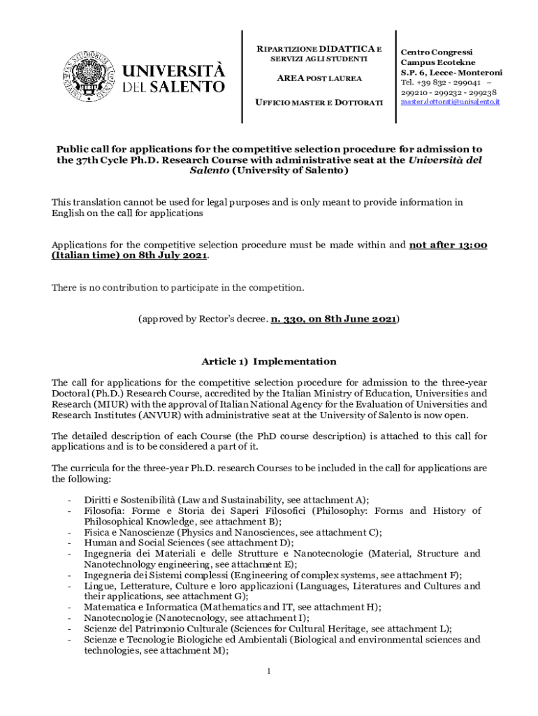 Get the free Notice of Public Exam for the admission to the 30th Cycle ...