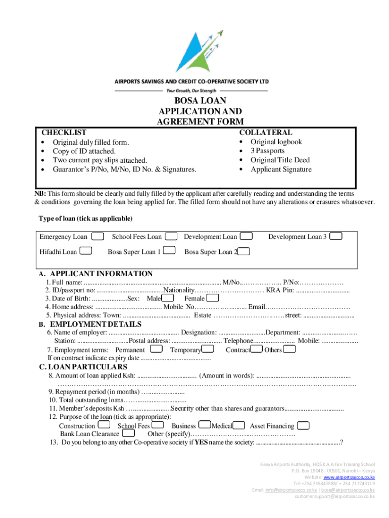 Visit the bosa loan application website or go to a local branch to access the application form.