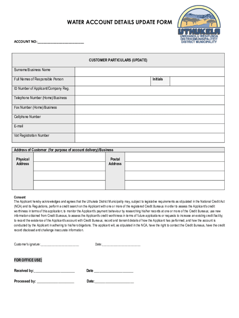 WATER ACCOUNT DETAILS UPDATE FORMACCOUNT NO:___CUSTOMER PARTICULARS (UPDATE)