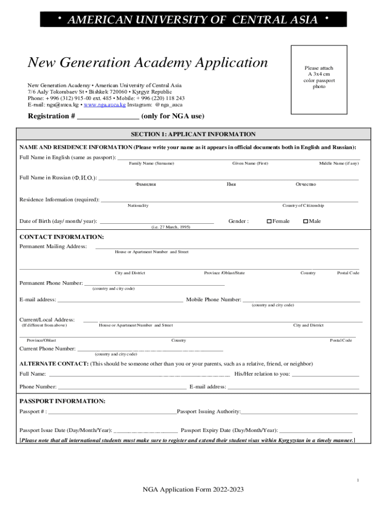 AMERICAN UNIVERSITY OF CENTRAL Asian Generation Academy ApplicationPlease attach