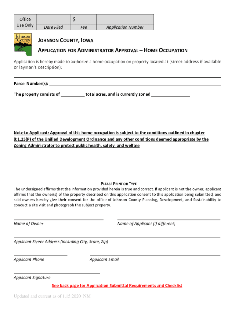 Use Validate FiledFeeApplication NumberJOHNSON COUNTY, IOWA