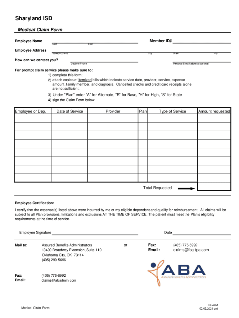 Get the free Sharyland ISD - Medical Claim Form - SharpSchool