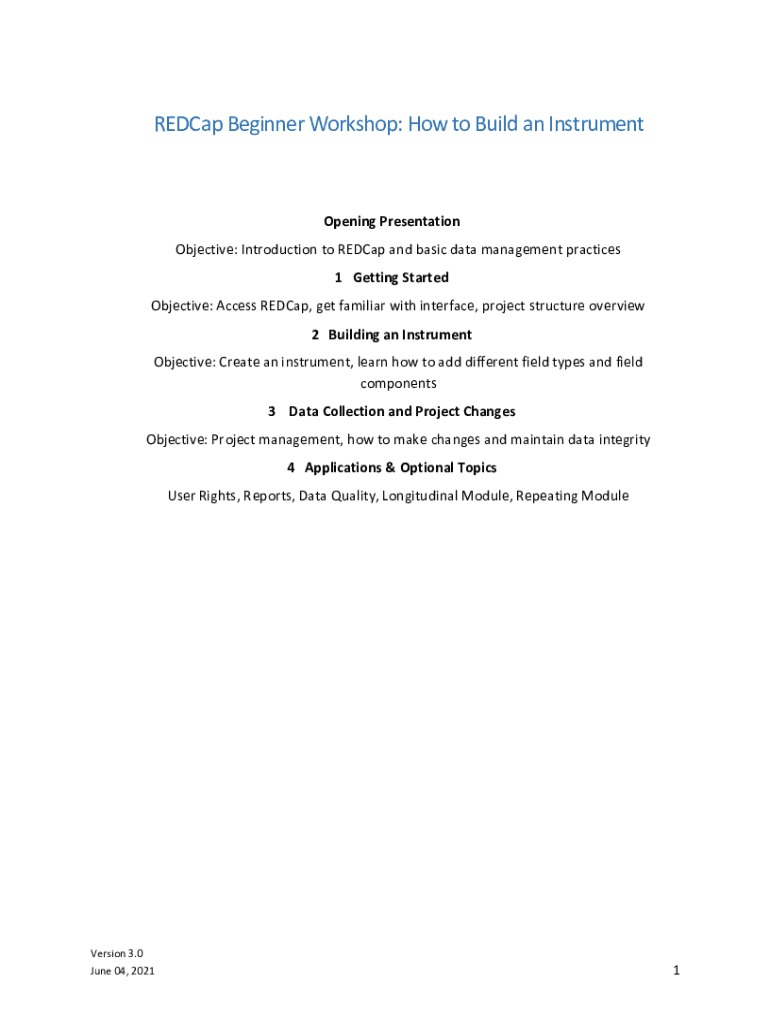 Objective Introduction To Redcap is not the form you're looking for?Search for another form here.