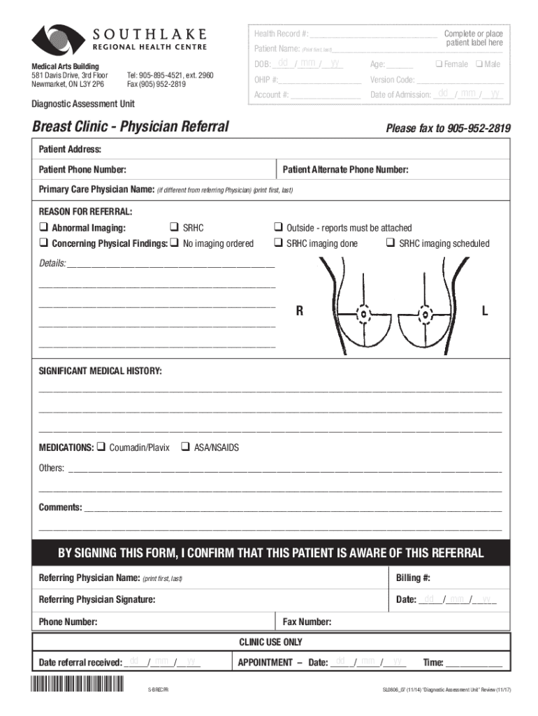 Email, fax, or share your breast clinic - physician form via URL. You can also download, print, or export forms to your preferred cloud storage service.