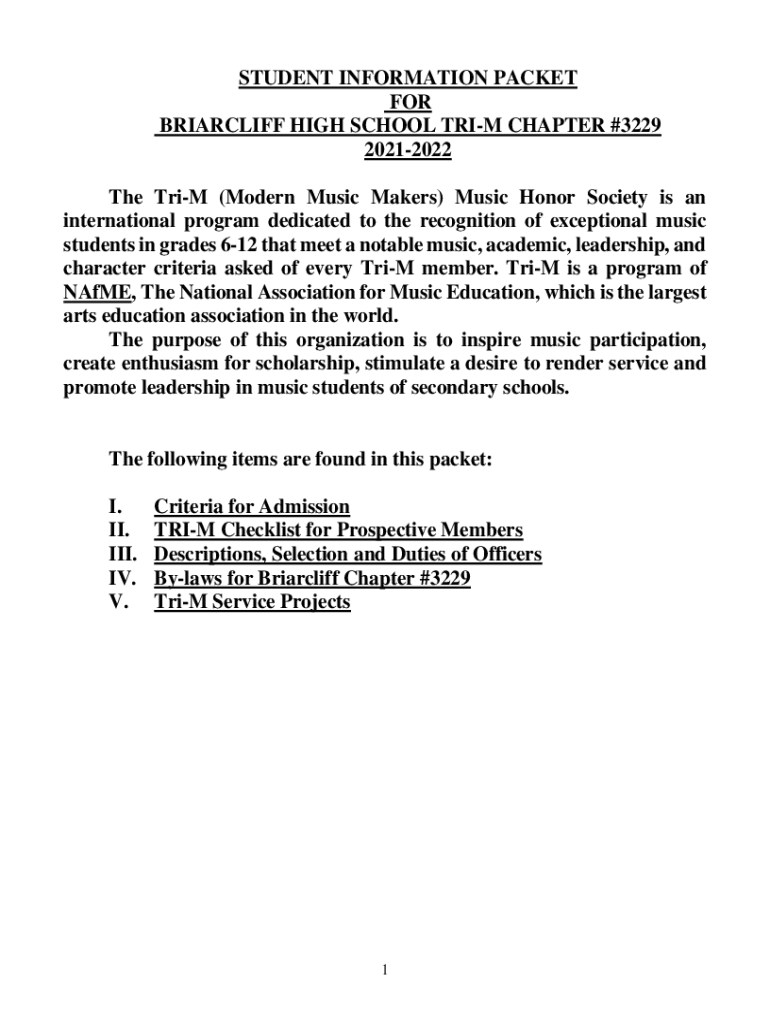 Get the free BRIARCLIFF HIGH SCHOOL TRI-M MUSIC HONOR SOCIETY