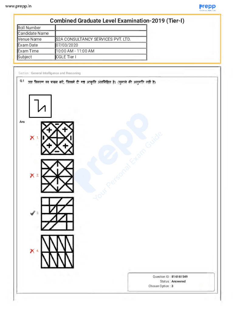 Combined Graduate Level Examination2019 (Tier) Roll Number Candidate Name Venue Name Exam Date Exam Time SubjectS2A CONSULTANCY SERVICES PVT. LTD. 07/03/2020 10:00 AM 11:00 AM COLE Tier Section :General