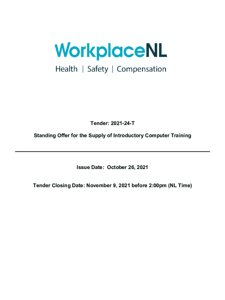 Standing Offer for the Supply of Introductory Computer TrainingIssue Date: October 26, 2021,