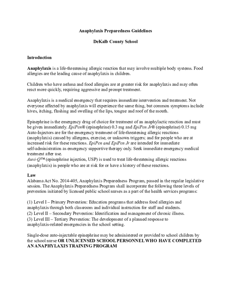 Anaphylaxis Preparedness Guidelines DeKalb County School Introduction Anaphylaxis is a life-threatening allergic reaction that may involve multiple body systems. Food allergies are the leading cause