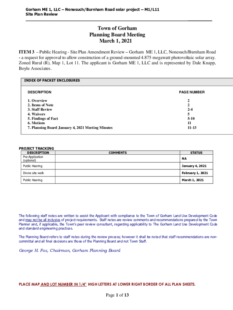 Gotham ME 1, LLC Nonesuch/Burnham Road solar project M1/L11 Site Plan Review___Town of Gotham Planning Board Meeting March 1, 2021, ITEM 3 Public Hearing Site Plan Amendment Review Gotham ME 1, LLC,