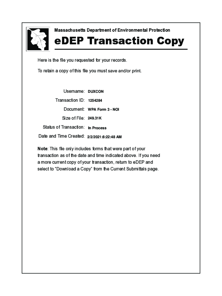 Get the free eDEP Transaction Copy - Town of Duxbury
