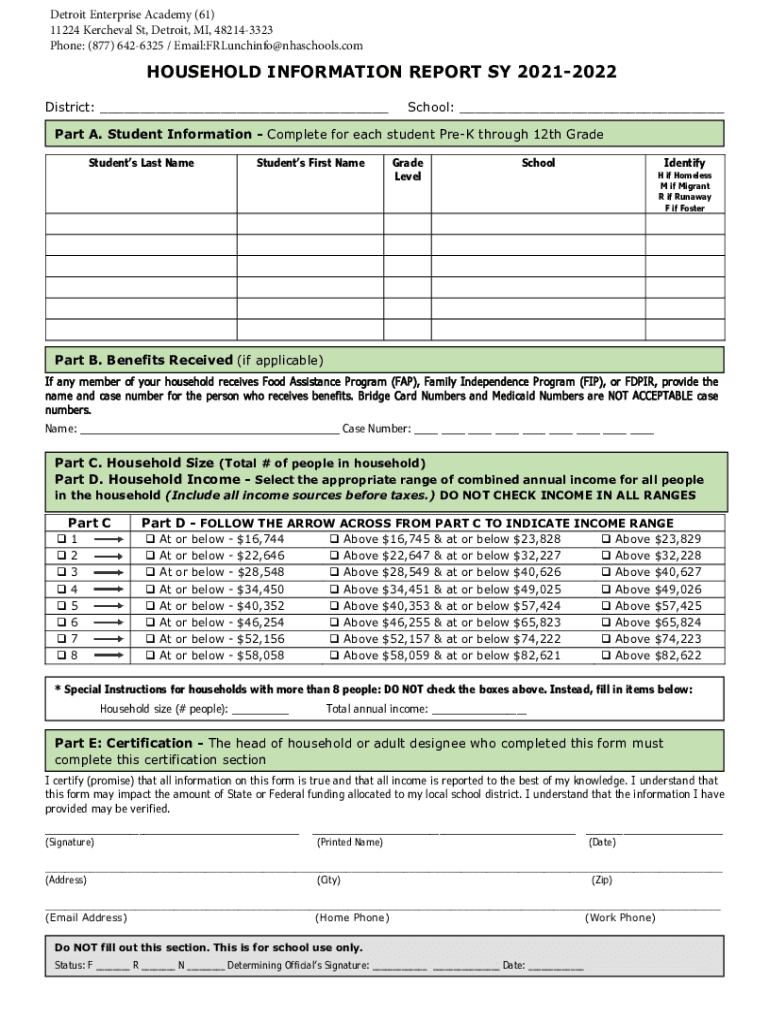 Phones: (877) 6426325 / Email:FRLunchinfo@nhaschools.household INFORMATION REPORT SY 20212022