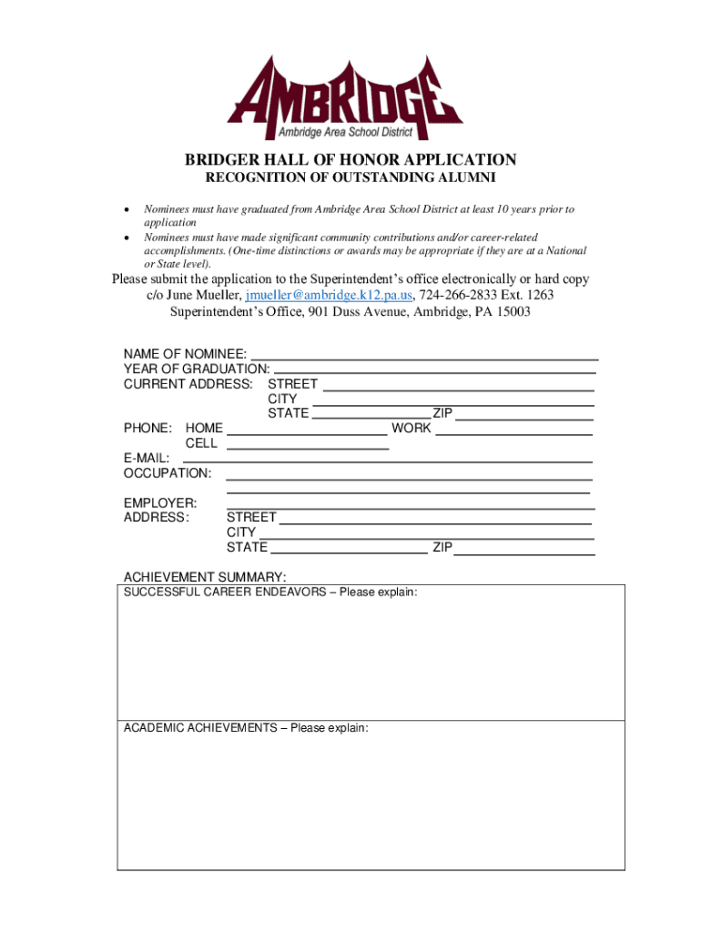 To fill out the Bridger Hall of Honor nomination form, individuals can visit the official website and complete the online form with the required information.