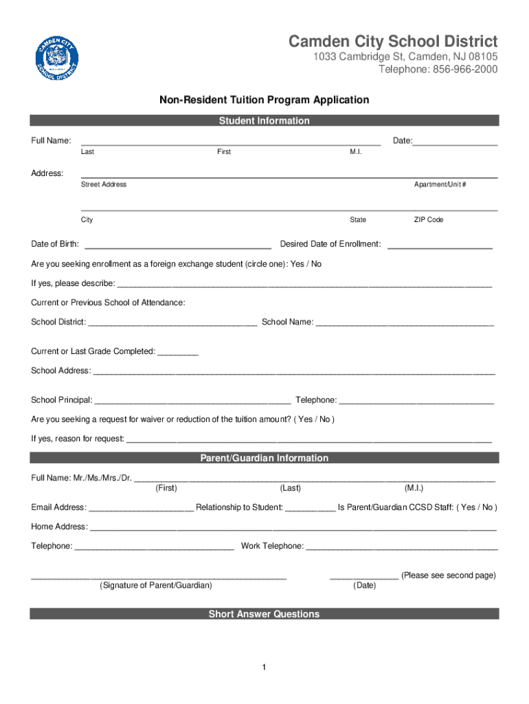 Get the free Nonresident Tuition Student Application - Camden City School ...