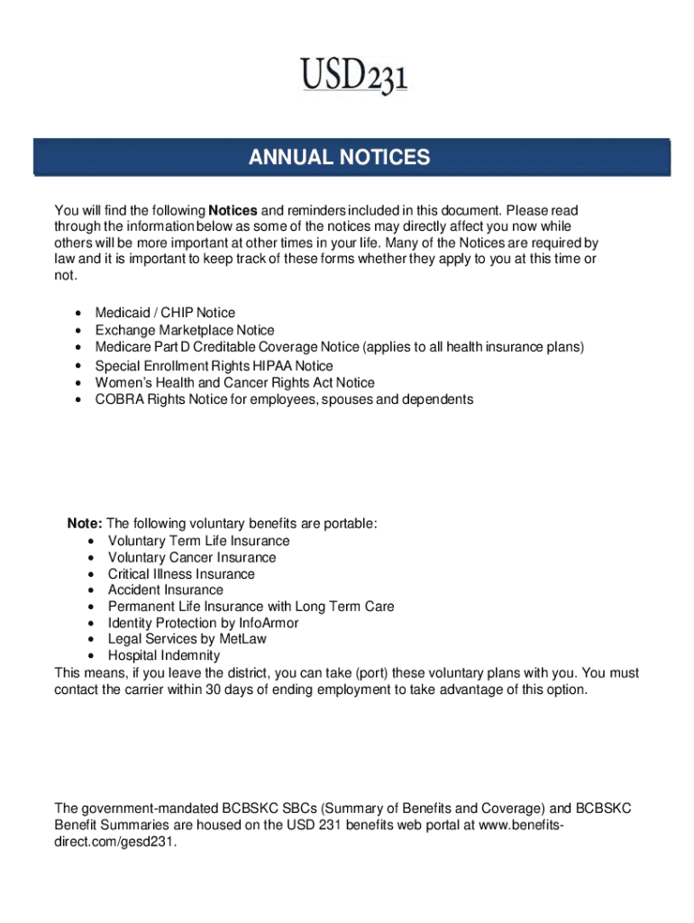 Get the free ANNUAL NOTICES - Benefits Direct