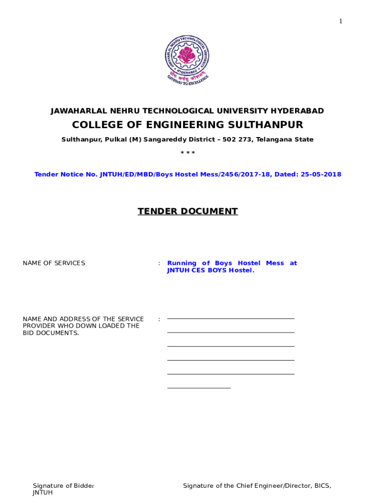 Tender Notice No. NTH/ED/MID/Boys Hostel Mess/2456/201718,