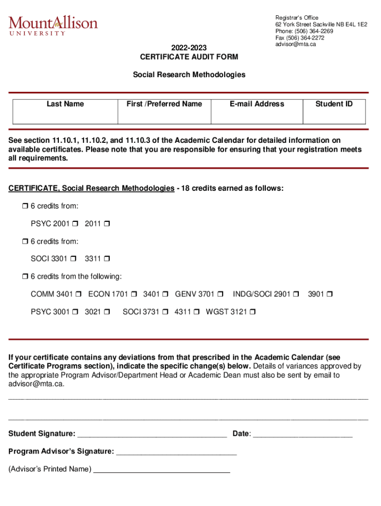 CERTIFICATE AUDIT FORMRegistrars Office