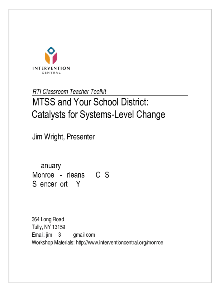 RTI Classroom Teacher Toolkits and Your School District: Catalysts for SystemsLevel Change Jim Wright, Presenter 5 January 2022 Monroe 2Orleans BONES Spencer port, NY364 Long Road Fully, NY 13159