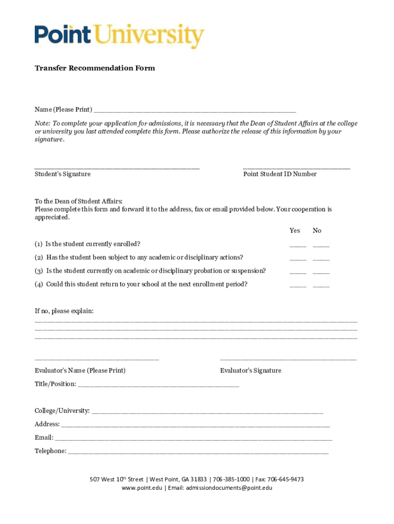 Transfer Recommendation Forename (Please Print) ___ Note: To complete your application for admissions, it is necessary that the Dean of Student Affairs at the college or university you last attended