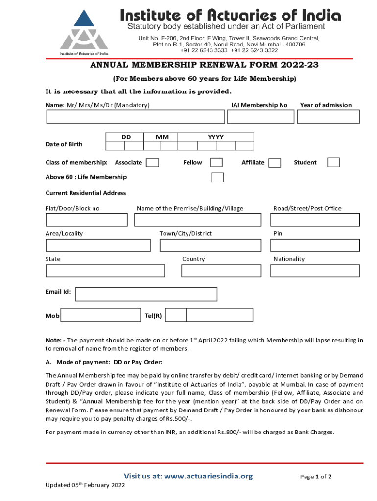 ANNUAL MEMBERSHIP RENEWAL FORM 202223