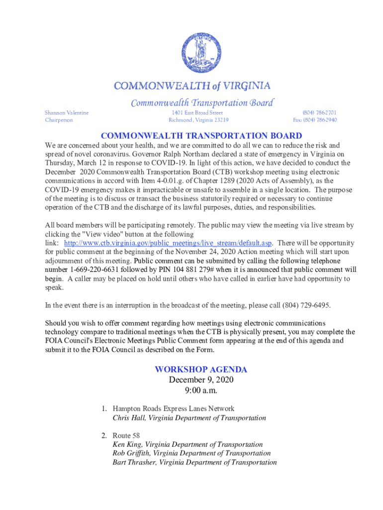 Get the free COMMONWEALTH TRANSPORTATION BOARD