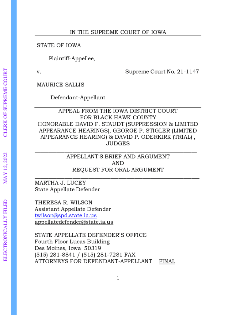 STATE OF IOWAELECTRONICALLY FILED 12, 2022CLERK OF SUPREME COURTPlaintiffAppellee,