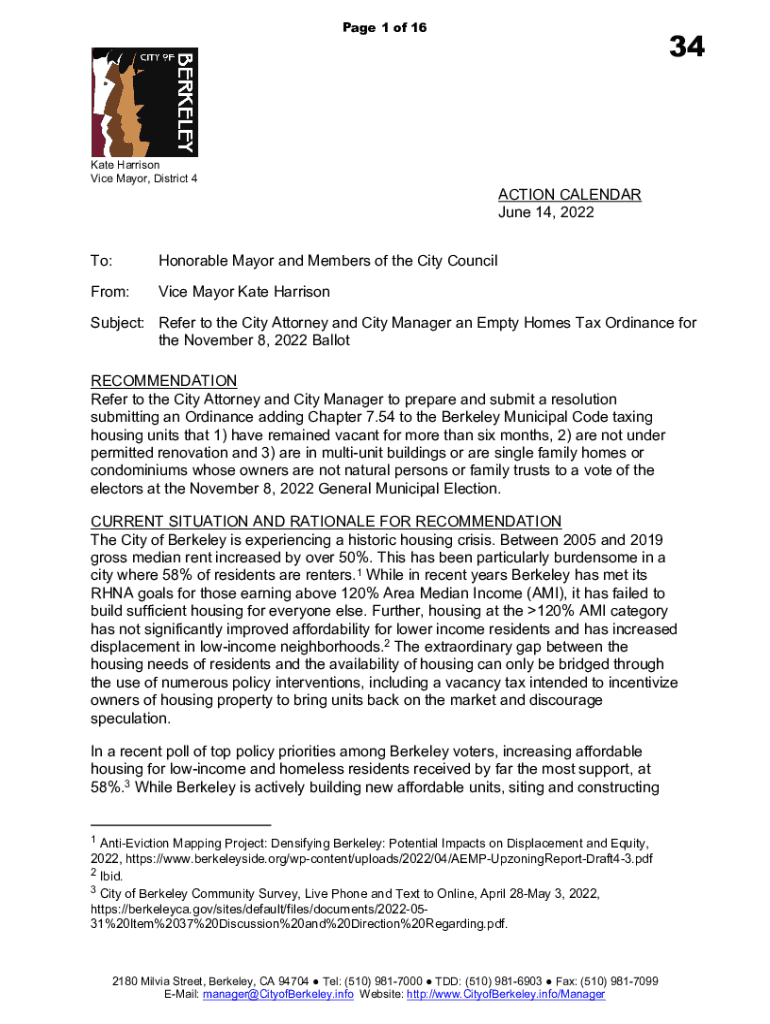 To:Honorable Mayor and Members of the City Councilor:Vice Mayor Kate HarrisonSubject: Refer to the City Attorney and