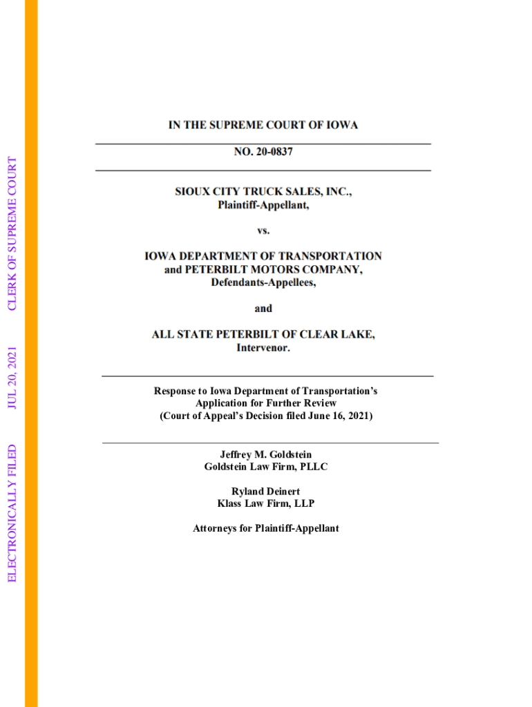 ELECTRONICALLY FILEDResponse to Iowa Department of Transportations