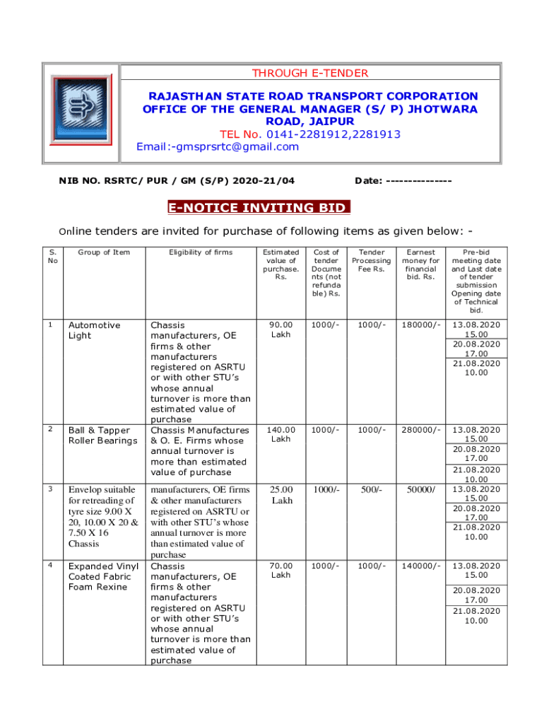 NIB NO. RS RTC/ PUR / GM (S/P)