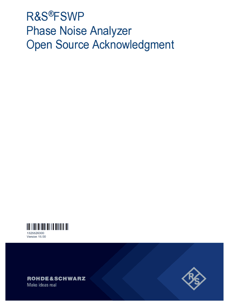 RSFSR Phase Noise Analyzer Open Source Acknowledgment(I0)1325526300 Version 15.00This document is valid for the following Rode & Schwarz instruments: R&SFSWP8R&SFSWP26R&SFSWP50 2022 Rode & Schwarz