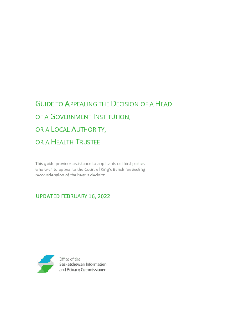 GUIDE TO APPEALING THE DECISION OF A HEAD OF A GOVERNMENT INSTITUTION, OR A LOCAL AUTHORITY, OR A HEALTH Trusteeship guide provides assistance to applicants or third parties who wish to appeal to
