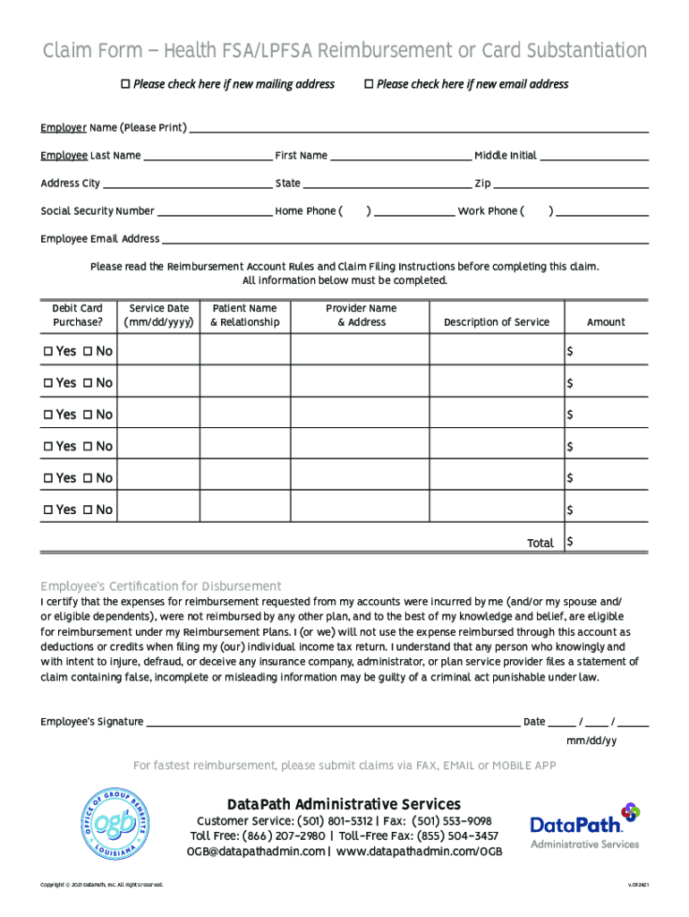 Email, fax, or share your claim formhealth fsalpfsa reimbursement form via URL. You can also download, print, or export forms to your preferred cloud storage service.